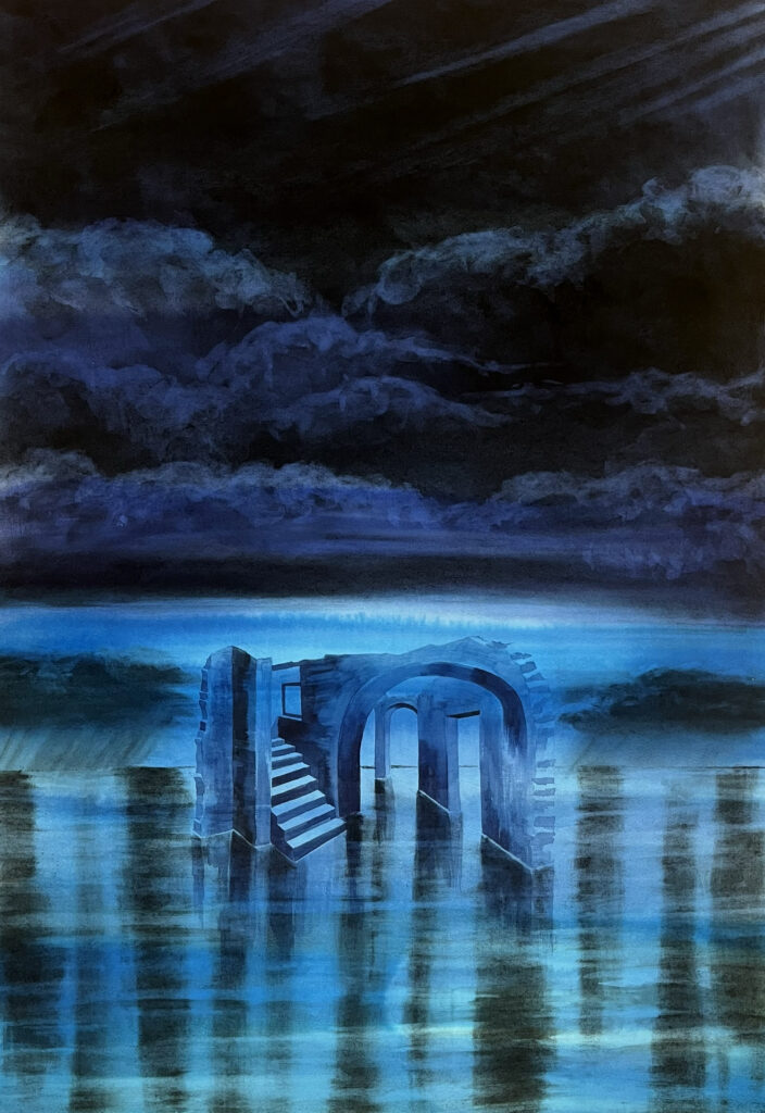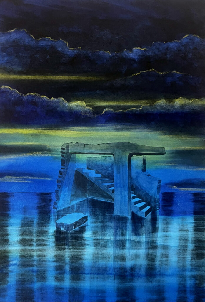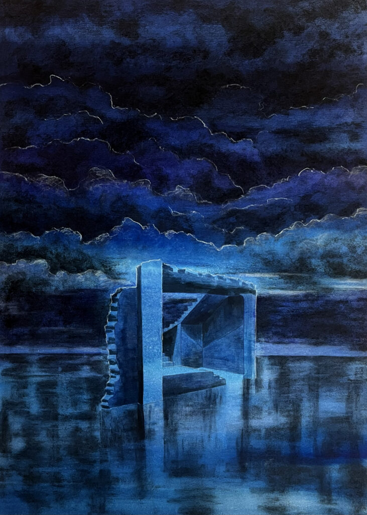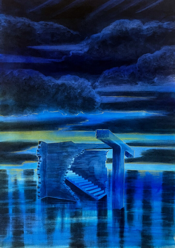 "L'heure bleue 2" 2025 Techniques mixtes sur papier 70 x 50 cm